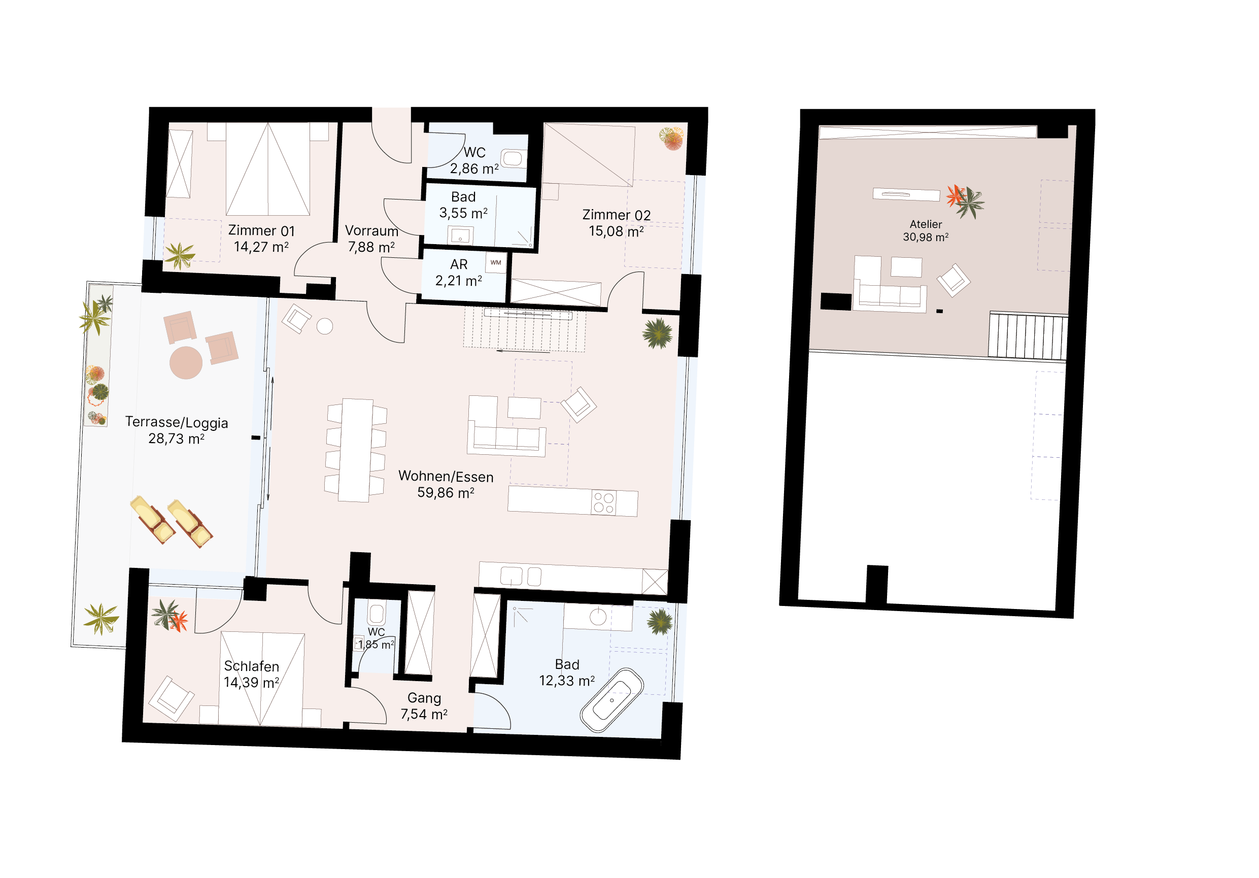 3 oder 4-Zimmer-Penthouse – Individuell anpassbar